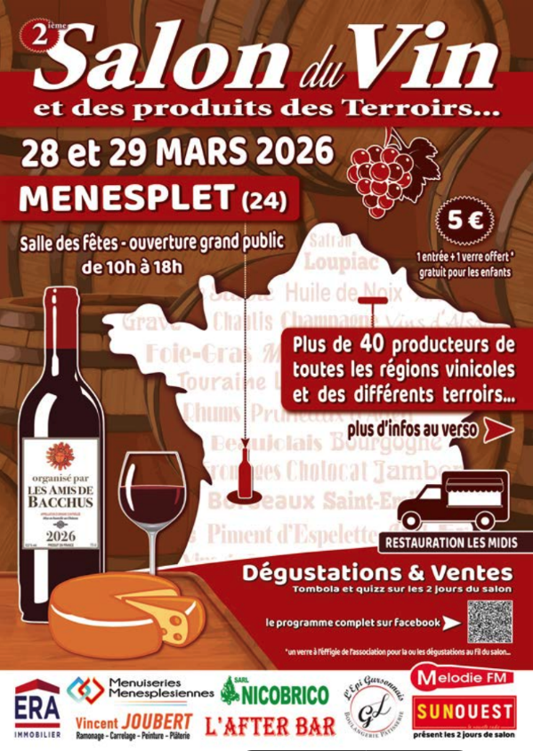 Les amis de Bacchus organisent leur deuxième salon du vin et produits des terroirs, 40 exposants venus de toute la France, les 28 et 29 mars prochain à la salle des fêtes de MENESPLET de 10h à 18h. Des quizz sur la journée et une tombola y seront organisés. Tirage le dimanche à 17h. Un […]